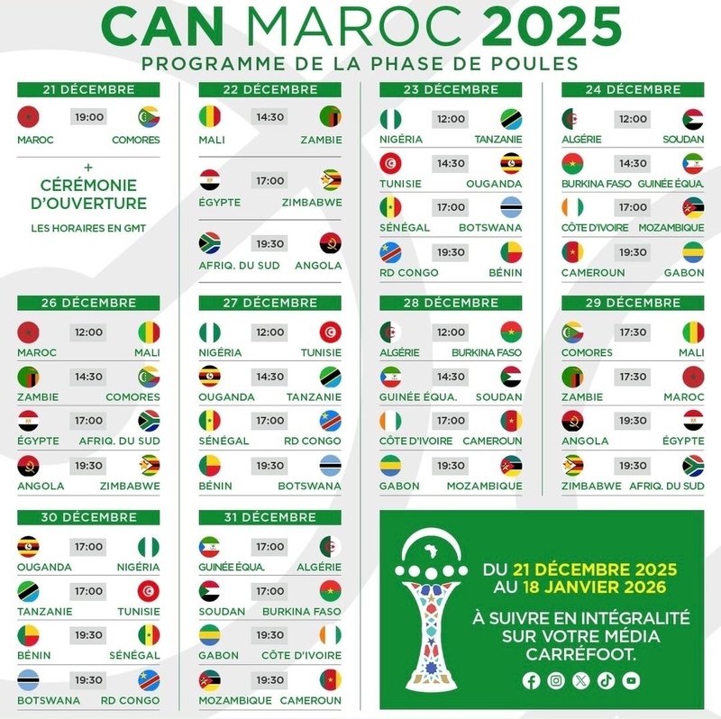 21 Aralık 2025 -18 Ocak 2026 tarihleri arasında düzenlenecek Afrika Uluslar Kupası’nın programı belli oldu.