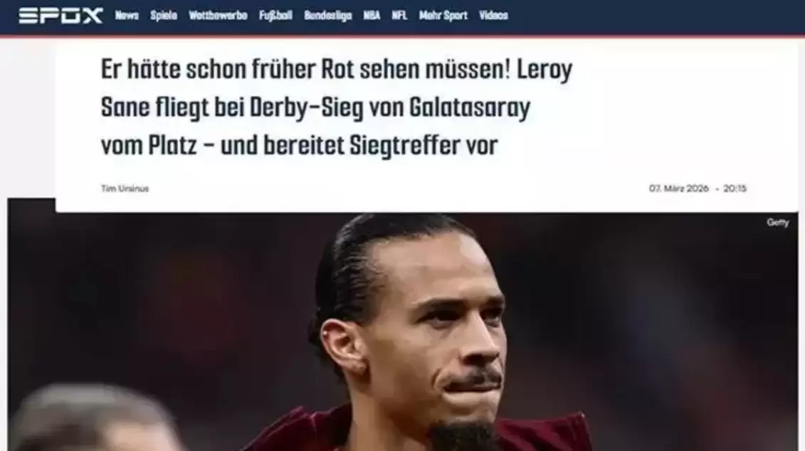 Tecrübeli yıldızın gördüğü kırmızı kart ülkesi Almanya’da da gündem oldu. İşte Sane hakkında Alman basınında yer alan yorumların bazıları şöyle: