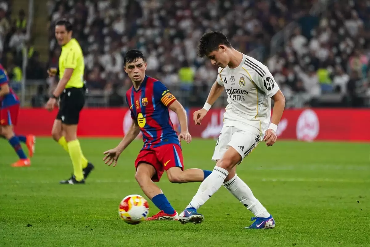 Milli futbolcu Arda Güler’in yedek kulübesinde başladığı karşılaşmada 36. dakikada Barcelona Raphinha’nın golüyle 1-0 öne geçti. 45+2. dakikada Vinicius Jr. ile Real Madrid eşitliği yakalarken, 45+4. dakikada Robert Lewandowski’nin golüyle Barça yeniden üstünlüğü ele geçirdi. 45+6. dakikada Gonzalo fileleri sarsınca takımlar soyunma odasına 2-2’lik eşitlikle girdi.