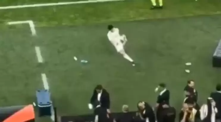 Arda Güler maçı bitiren son düdüğün ardından yenilginin de öfkesiyle saha kenarında duran şişeye tekme atmak istedi. Milli futbolcu şişeye tekmeyi salladığında ayağının kaymasıyla yere düştü. Hızla yerden kalkan milli futbolcu eliyle yere vurup soyunma odasına gitti.
