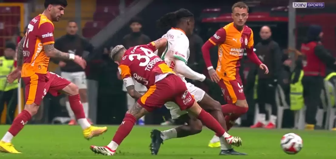 Bülent Yıldırım: Torreira’nın tabanıyla krampon krampona değil, Janvier’in bileğine gelen bir müdahalesi var. Teknik anlamda bunun karşılığı faul ve kesinlikle sarı kart görmesi gerekirdi.