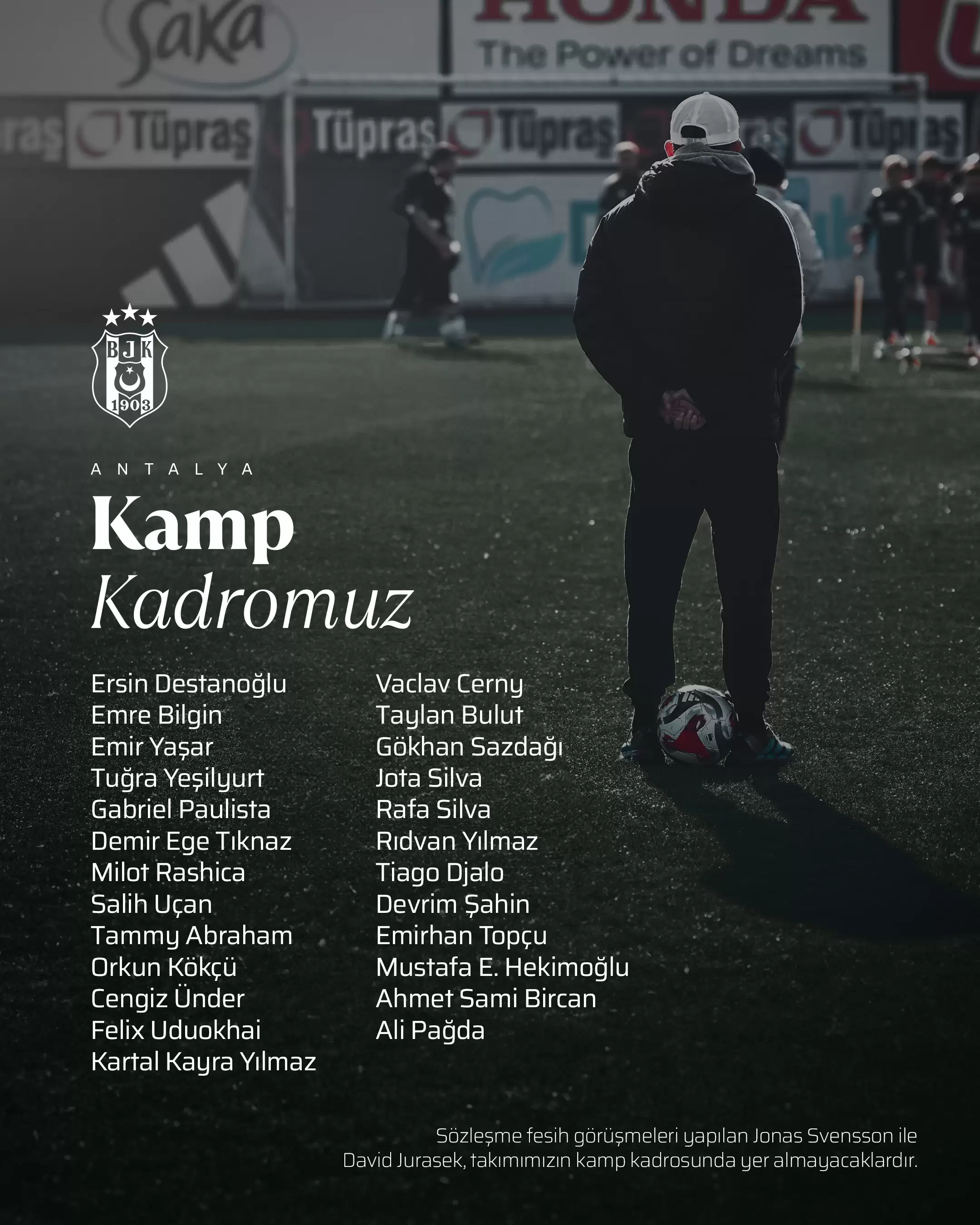 Beşiktaş’ın sosyal medya hesabından yaptığı açıklamayla Jonas Svensson ile David Jurasek’in Antalya’ya götürülmeyeceğini ve iki futbolcunun da sözleşmelerinin feshedileceğini açıkladı.