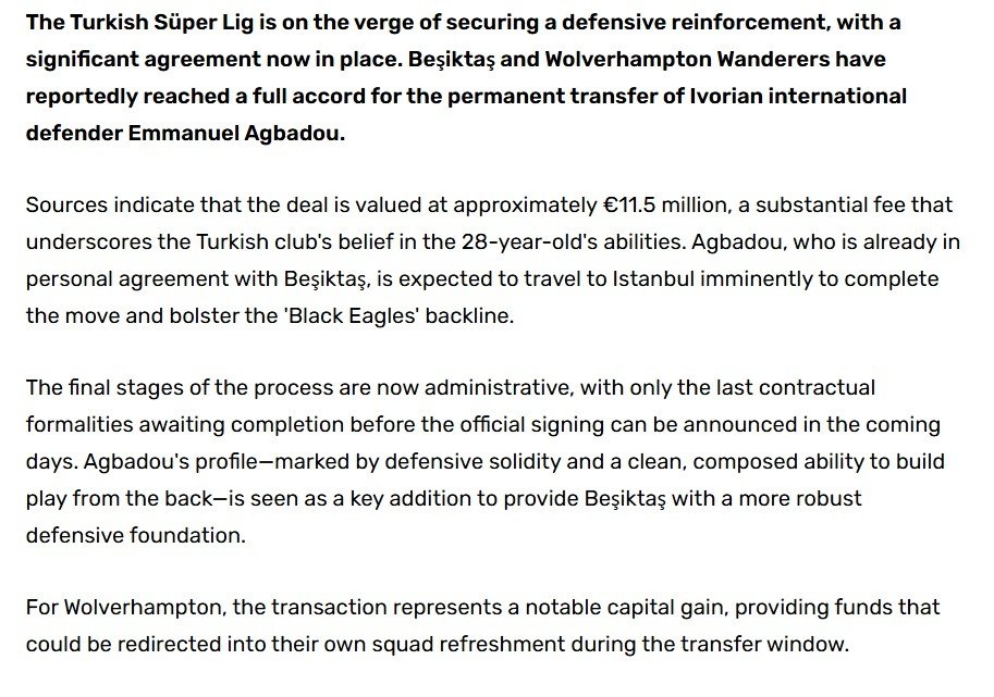 Ocak ayı öncesinden Wolverhampton forması giyen Emmanuel Agbadou için temaslarına başlayan siyah-beyazlılar, oyuncunun kalıcı olarak takıma katılması için gün sayıyor.