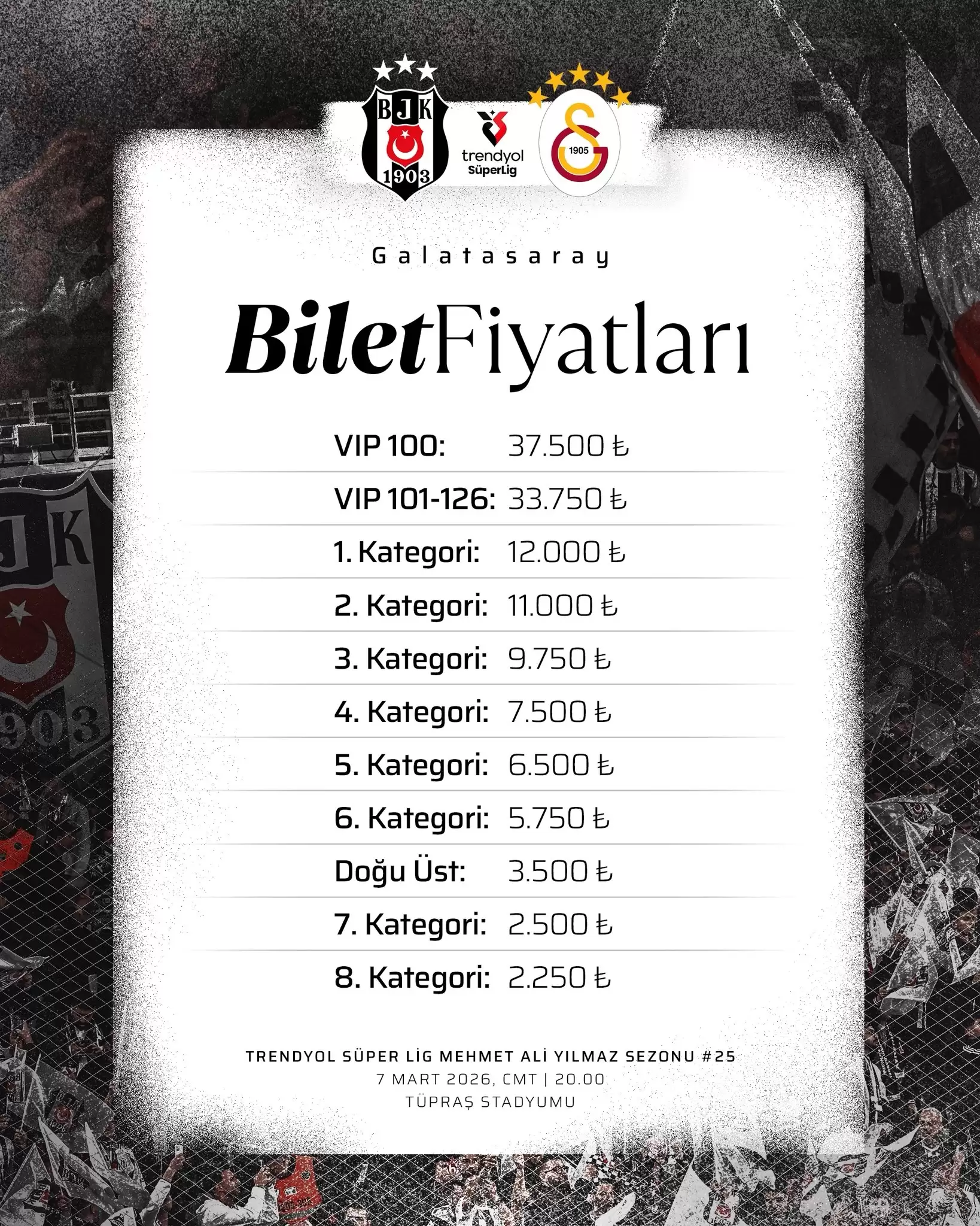 Siyah-Beyazlı yönetim, Galatasaray maçının bilet fiyatlarını duyurdu.