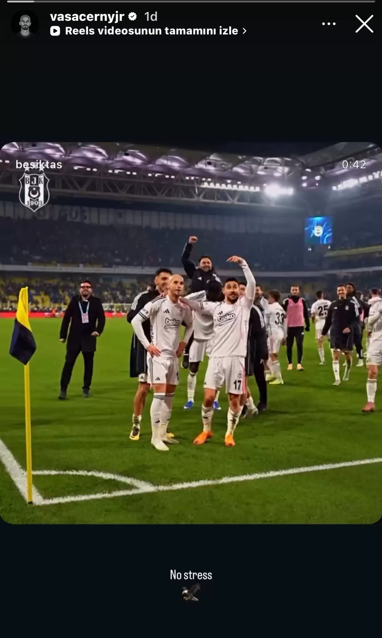 Siyah-beyazlı ekibin Çek futbolcusu Cerny, çıkan haberlerin ardından bir paylaşım yaptı. 28 yaşındaki sağ kanat Türkiye Kupası’nda Fenerbahçe’ye karşı deplasmanda alınan galibiyetten bir fotoğrafını paylaştı ve “Stres yok” notunu düştü.