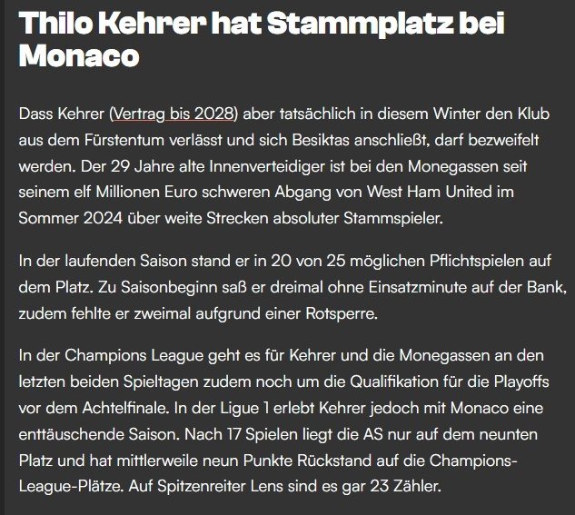Habere göre, sözleşmesi 2028 yılına kadar devam eden Kehrer’in bu kış Monaco’dan ayrılıp Beşiktaş’a katılması şüpheli olarak görülüyor. Takımın kaptanı olan Alman oyuncu, takımında süre bulmakta zorlanmıyor. Bu sezon Monaco formasıyla 20 maça çıkan 29 yaşındaki oyuncunun piyasa değeri 18 milyon euro olarak gösteriliyor.