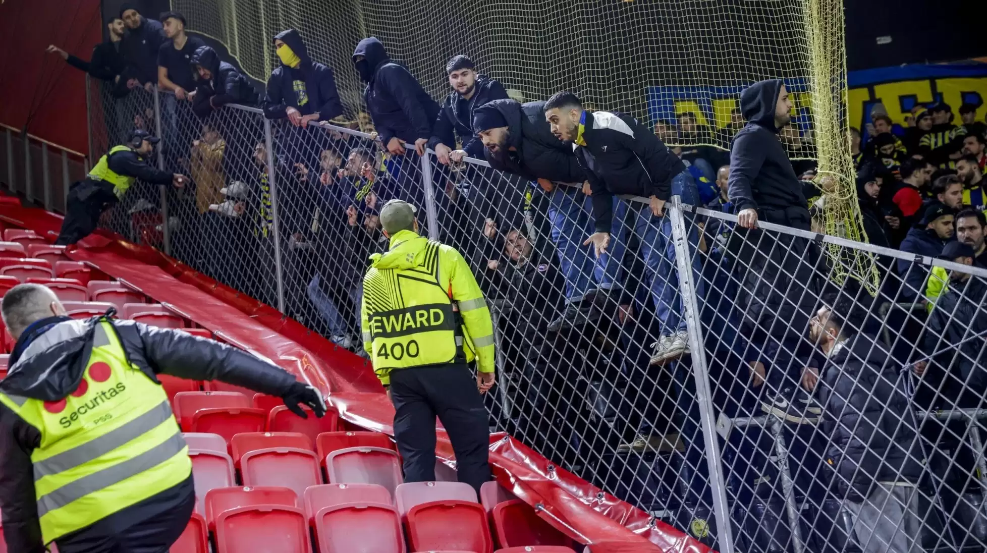 Karşılaşmanın son düdüğünün çalmasının ardından tribünlerde gerginlik arttı.