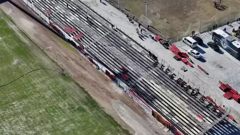 Stadyumda 3 bin kişilik portatif tribünün kurulma işlemi tamamlanırken basına ayrılacak tribünün kuralacağı platform da tamamlandı.