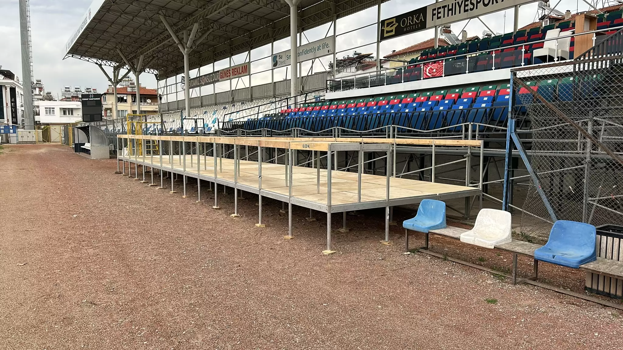Öte yandan Fethiye Gençlik ve Spor Müdürlüğü tarafından Fethiye Şehir Stadı’nın zeminini iyileştirilmesi ve deprem analiz raporunun olumsuz gelmesi nedeniyle yıkılan 3 bin kişilik tribünün yerine, aynı kapasitede portatif tribün kurulumu için çalışma başlatılmıştı.