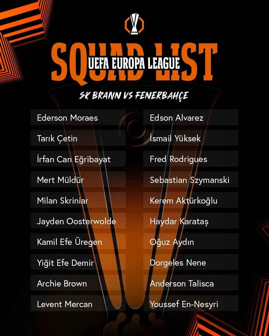 UEFA Avrupa Ligi’nin 6. haftasında yarın Norveç ekibi Brann ile deplasmanda karşılaşacak Fenerbahçe’nin kamp kadrosu belli oldu.