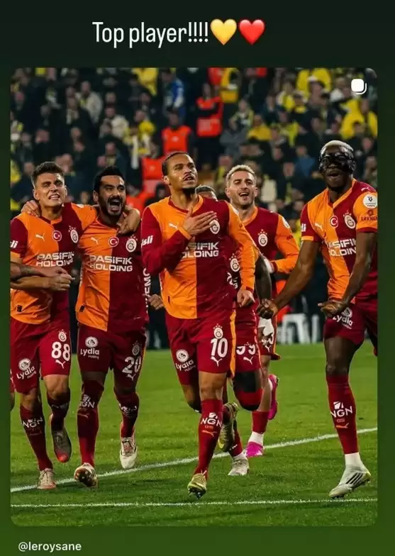 Osimhen, derbide Galatasaray’ın tek golüne imza atan Leroy Sane için yaptığı paylaşıma “Üst düzey futbolcu” notunu düştü.