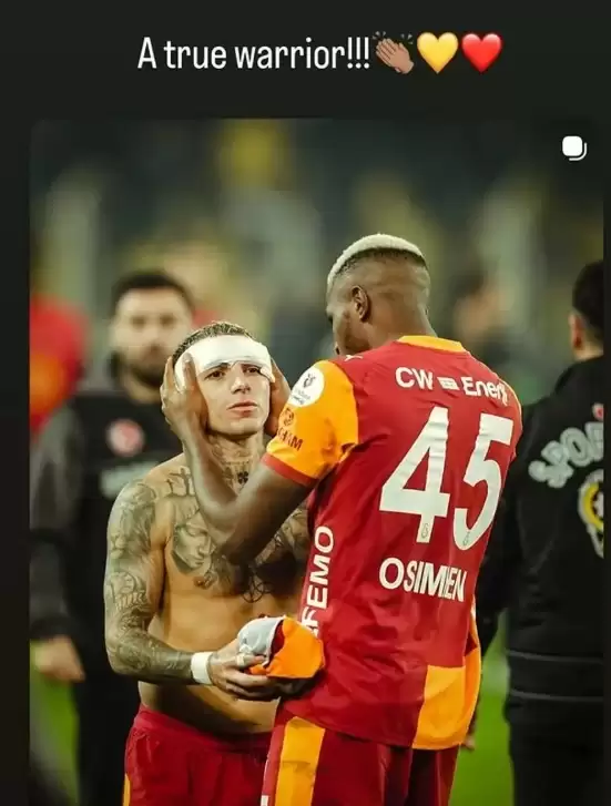 Osimhen, sarı kırmızılı takımın Ukraynalı dinamosu Lucas Torreira paylaşımını ise “Gerçek bir savaşçı” notunu ile yayınladı.