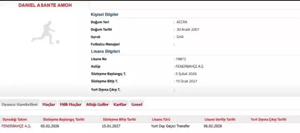 TFF’nin resmi internet sitesinde yer alan Futbolcu Bilgi Bankası bölümünde Amoh’un sözleşme başlangıç tarihinin 5 Şubat 2026, sözleşme bitiş tarihinin ise 15 Ocak 2027 olduğu görünüyor.