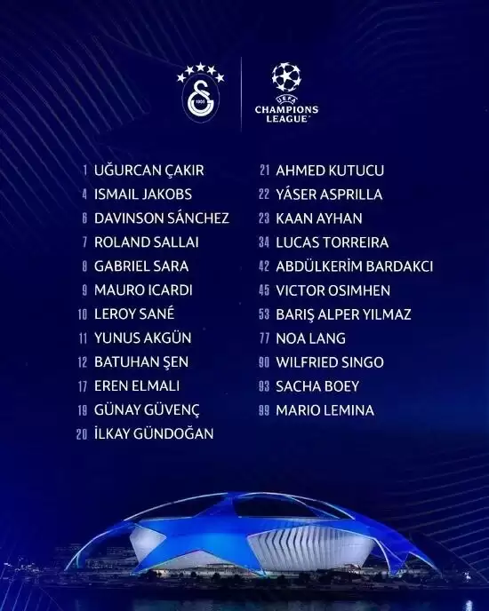 Galatasaray’ın Şampiyonlar Ligi için UEFA’ya verilen listede yaptığı değişiklikler belli oldu. Sarı-kırmızılılarda yeni transferlerden Noa Lang, Yaser Asprilla ve Sacha Boey dahil edildi.