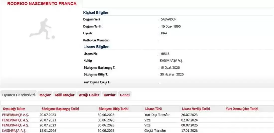 Transfer çalışmalarını sürdüren Fenerbahçe, kadro planlaması kapsamında Rodrigo Becao ile ilgili kararını netleştirdi. Sarı-lacivertliler, 29 yaşındaki Brezilyalı savunmacının sezon sonuna kadar Kasımpaşa’ya kiralandığını Türkiye Futbol Federasyonu’na bildirdi.