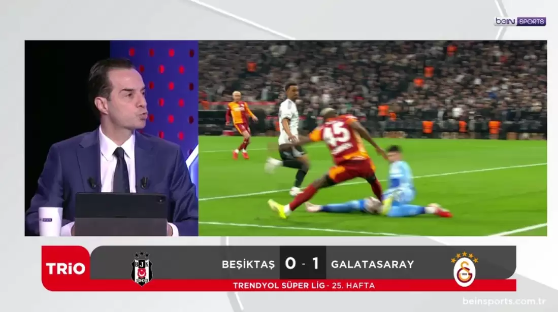 Trendyol Süper Lig’in 25. haftasında Galatasaray, deplasmanda Beşiktaş’ı 1-0 mağlup etti. beIN TRİO programında yer alan eski hakemler Bülent Yıldırım, Deniz Çoban ve Bahattin Duran, karşılaşmadaki önemli pozisyonları ve hakem kararlarını değerlendirdi.