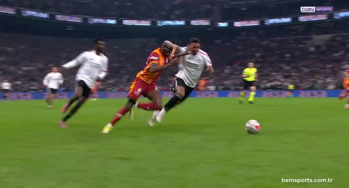 Bahattin Duran: Osimhen’in yaptığı hareket kesinlikle faul. Devamında Osimhen’in topa vurması hakemi protesto amaçlı değil. Beşiktaş hızlı bir şekilde oynamak isteyecek. Osimhen düdüğü duydu, hakeme bakıyor, faul olduğunu biliyor ama buna rağmen koşuşunu sürdürüyor ve kalecinin üzerinden topa vuruyor. Bu hareketten Osimhen 2. sarı kartı görüp oyundan ihraç edilmeliydi bence.