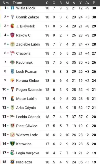 18 takımlı ligde lider ile düşme hattı arasındaki puan farkının yalnızca 10 olması, Ekstraklasa’da bu sezon güvenli bölge kavramını tamamen ortadan kaldırdı. Kısa süreli galibiyet veya mağlubiyet serileri sıralamayı kökten değiştirebiliyor.