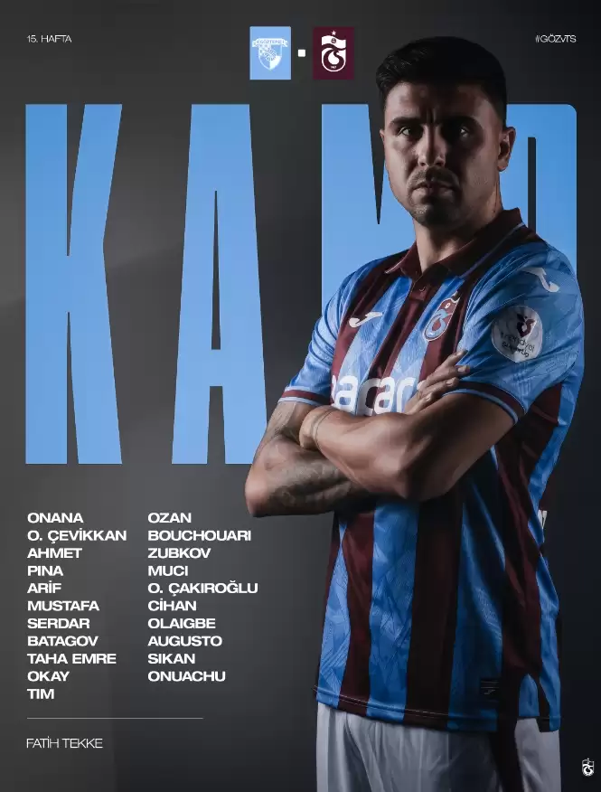 Karadeniz ekibinin Göztepe maçı kafilesinde yer alan 21 futbolcu şöyle: