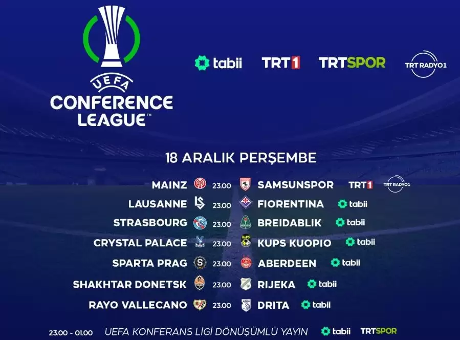 UEFA Konferans Ligi’nde canlı yayın programı şöyle:
